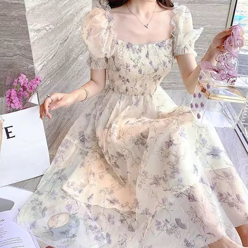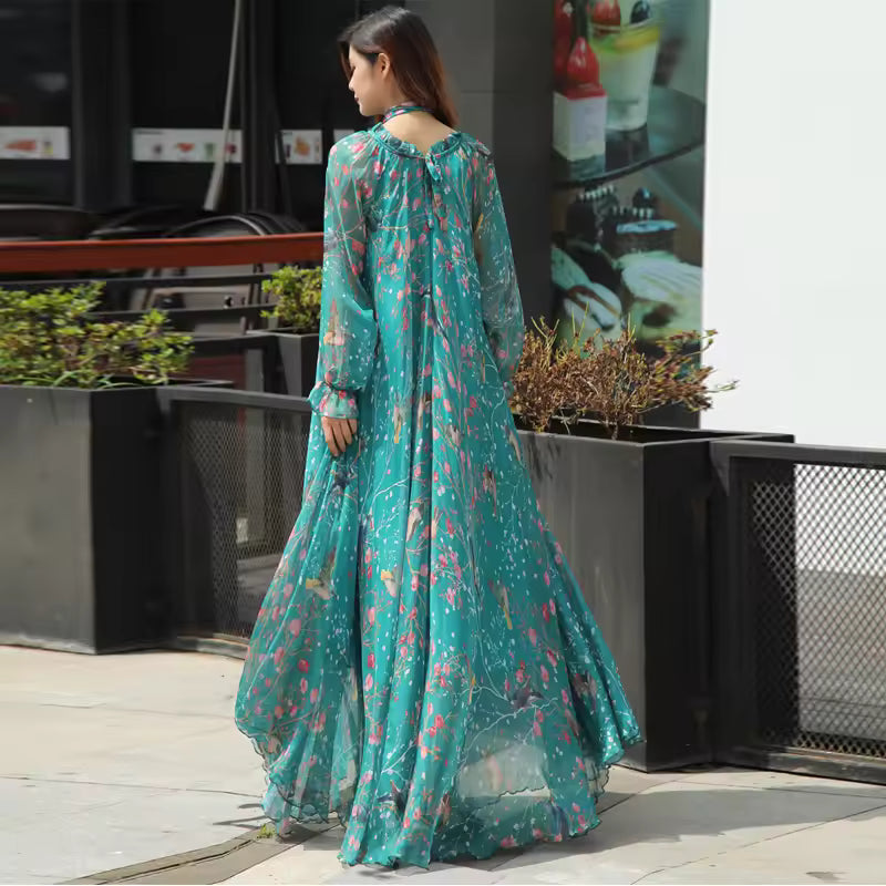 Crafted from soft, breathable chiffon with a delicate inner lining, this dress feels light and luxurious against the skin. The fabric flows gracefully with every movement, ensuring comfort without compromising style, making it ideal for warm-weather events or all-day wear.
