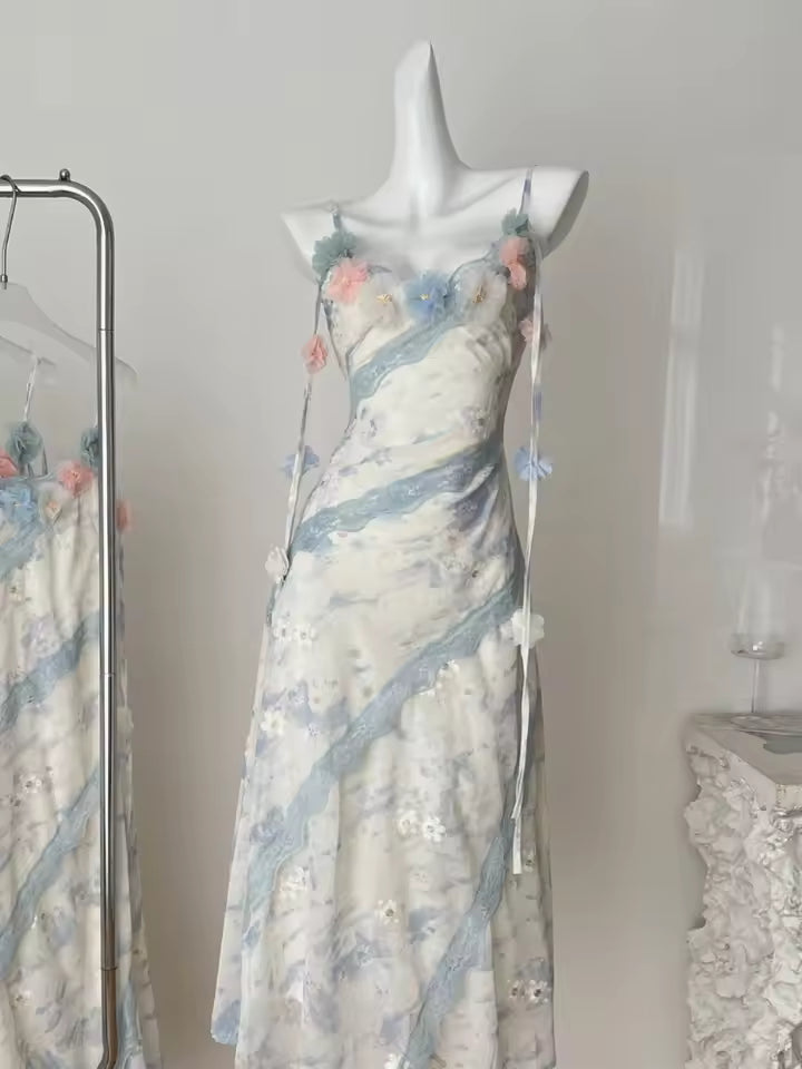 Robe Mi-Longue Imprimée Lacée Style Europe & Amérique
