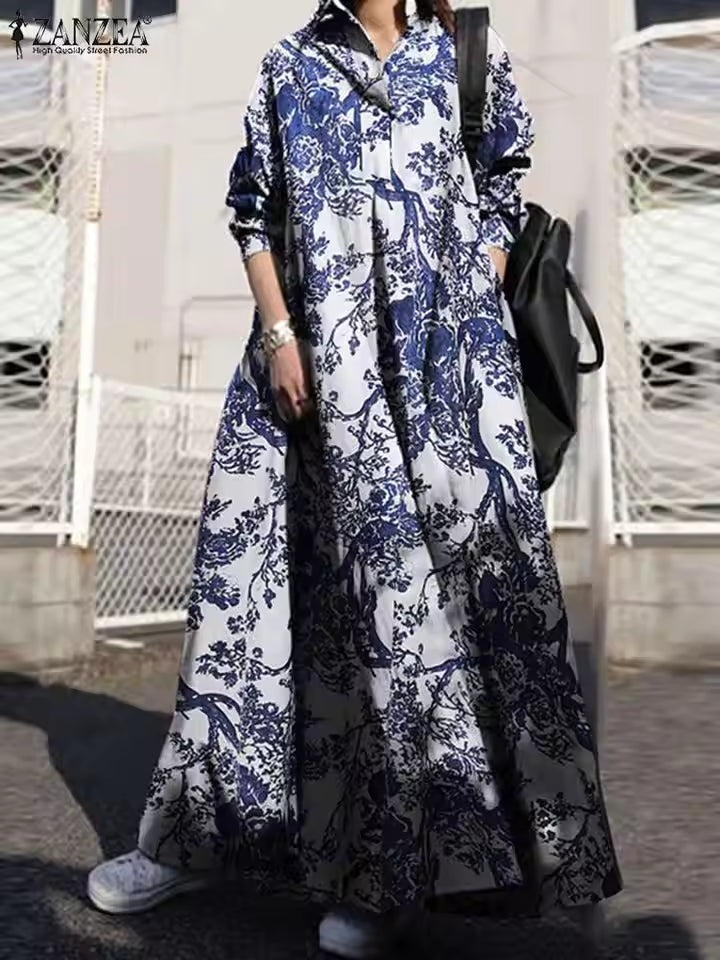 Élégance Vintage pour l’Automne La robe longue style chemise ZANZEA automne 2024 séduit par son...