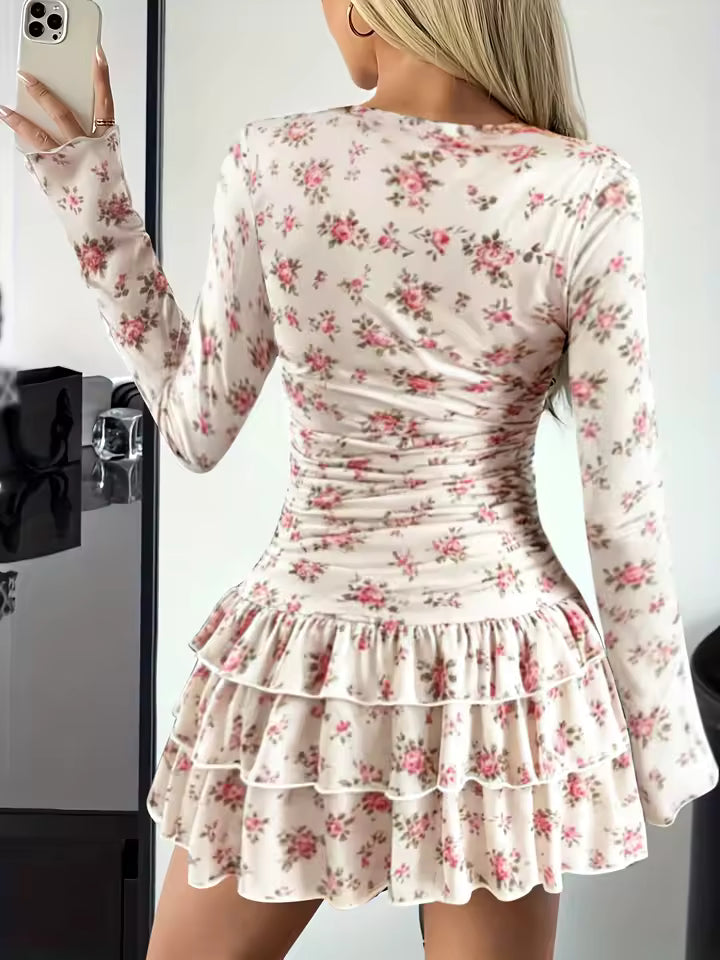 L’ourlet froncé apporte du mouvement et une touche délicate à la robe, renforçant son style élégant et féminin.